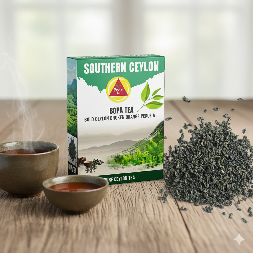 - Delight in the rich and robust flavors of Ceylon Down South BOP A Black Tea, sourced from the vibrant tea gardens of Sri Lanka’s southern region. This high-quality Broken Orange Pekoe (BOP) grade tea boasts a full-bodied, brisk flavor with a smooth, malty finish. The carefully selected, broken leaves infuse into a rich amber liquor, offering a hearty cup that’s perfect for tea enthusiasts who appreciate a strong, yet well-balanced brew. Ideal for those who enjoy a flavorful and invigorating tea, Ceylon Down South BOP A is perfect for morning pick-me-ups or afternoon refreshment.